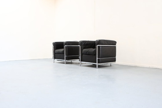 Sillón LC2 original de la famosa serie Le Corbusier, fabricado por Cassina. Diseño atemporal de 1928 con estructura de acero cromado y cojines sueltos. Un sillón icónico y muy cómodo que se adapta tanto a interiores modernos como vintage.