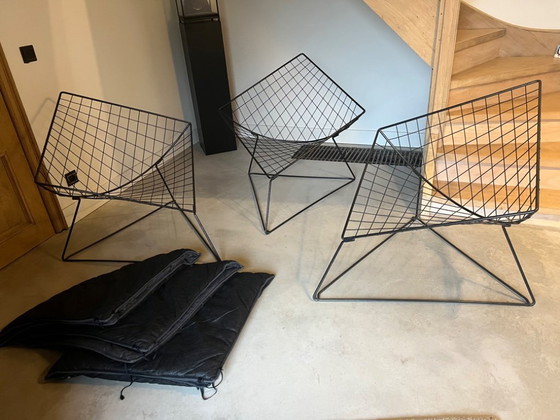 Experimente la elegancia moderna de este conjunto de tres sillones Oti, diseñado por el reconocido Niels Gammelgaard. Estos sillones combinan una elegante estructura de metal con cómodos cojines de tela, convirtiéndose en un complemento elegante y funcional para cualquier espacio contemporáneo.