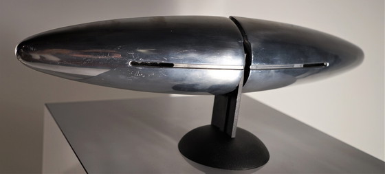 3 apliques B-Lux Olympia D. Diseñador: Jorge Pensi. Aplique elipse. Juego de 3 unidades en estado usado. Material: aluminio pulido. Lámparas de diseño de los años 80.