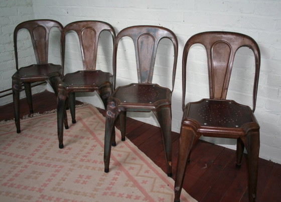 Sillas Fibrocit vintage restauradas, diseñadas y fabricadas en los años 50 y 60. Diseño belga de metal y gran solidez. Estas sillas se han dejado en su estado original, lo que significa que se aprecian todos los signos de uso y antigüedad. Se les ha retirado la pintura desconchada y se les ha aplicado barniz transparente. La estructura se ha soldado donde ha sido necesario, dándole un aspecto industrial adicional. Los asientos son una réplica exacta del asiento original con un patrón de agujeros en forma de estrella (lo que sugiere que las sillas son de la época de la primera serie de producción). Se han reemplazado los tornillos y las gomas de las patas. También se han reemplazado algunas inserciones de madera de las patas (dos piezas). Proceden de un antiguo desván de fábrica. Un patrimonio industrial de gran belleza.