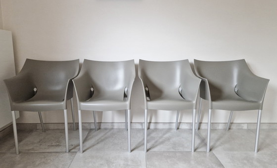 Silla Dr. NO de Philippe Starck para Kartell - 4 sillas de diseño grises - aptas para uso interior y exterior - apilables - fáciles de limpiar - precio original 259 euros por silla - usadas solo en interior y en muy buen estado.