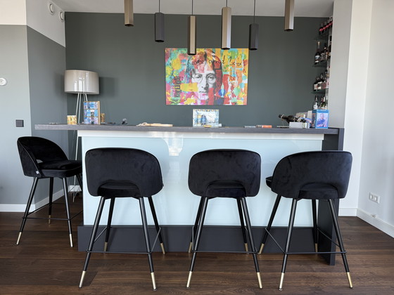 4 taburetes de bar Eichholtz Cliff Roche de terciopelo negro