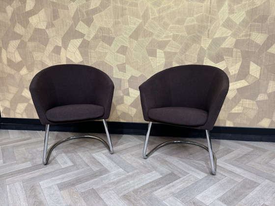 5 sillas Artifort Megan en color marrón interglobe, en buen estado. Ligera decoloración en la superficie superior. También se venden por separado. Envío a toda Holanda. La silla Artifort Megan, un diseño de 2005 del diseñador holandés René Holten, forma parte de la familia Megan. Una cómoda silla cubo, ideal para el comedor o una sala de reuniones. Su base cerrada contrasta con la amplitud de su base. Su diseño sencillo y elegante la convierte en un complemento perfecto para cualquier mesa de comedor. Dimensiones: 65 cm de profundidad x 61 cm de ancho x 85 cm de alto.