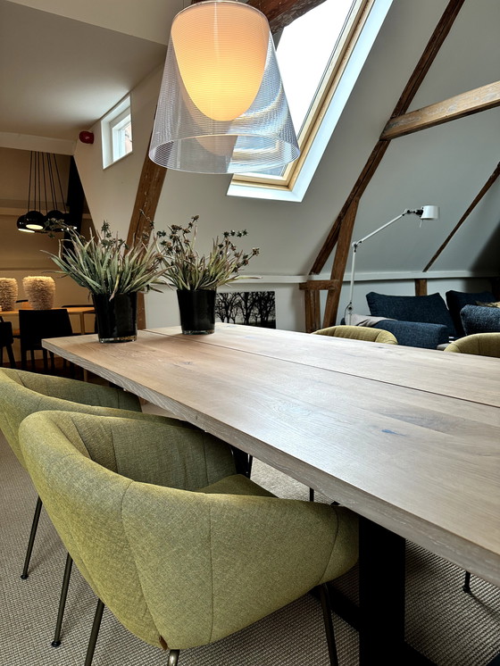Aquí tienes un precioso juego de sillas de comedor de Montis. Es un modelo de exposición, así que está prácticamente nuevo. Incluye: 4 sillas Luna en tela Steppe con base de 4 patas efecto bronce. Desde 1595 € hasta 1195 €; 1 silla Luna en tela Steppe con base giratoria de nogal lacado mate. Desde 2007 € hasta 1495 €.