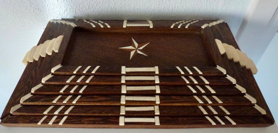 6 bandejas Art Decó de palisandro con incrustaciones de hueso - Angloindio.