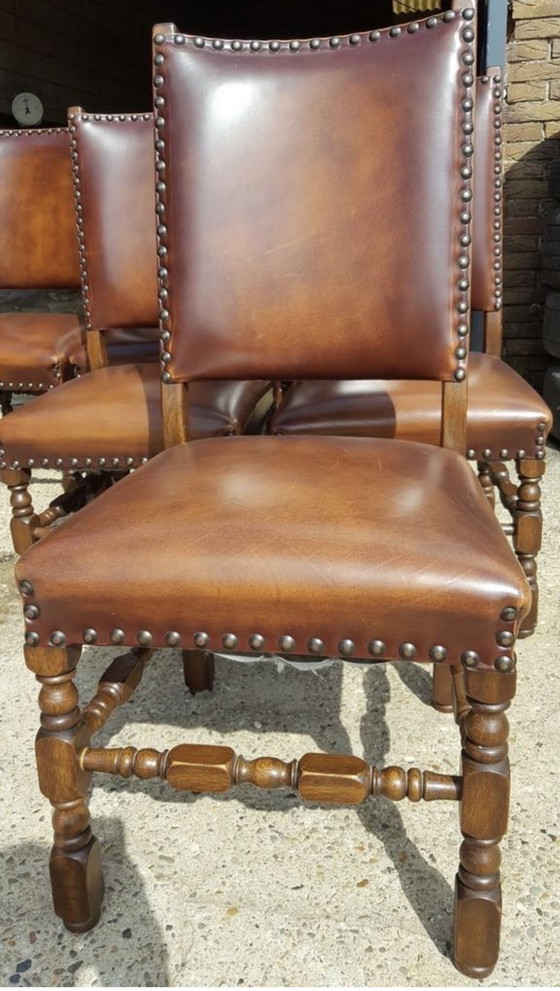 Eleve su experiencia gastronómica con este exquisito juego de seis sillas clásicas de comedor de cuero y roble. Cada silla es un testimonio de elegancia atemporal, con una rica tapicería de cuero marrón que irradia sofisticación y calidez. La robusta estructura de roble no solo proporciona durabilidad, sino también un toque de encanto tradicional, lo que las convierte en el complemento perfecto para cualquier comedor refinado.