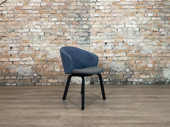 La silla Close Azul Gris es un diseño de Gudmundur Ludvik para la marca Arco. Tiene una estructura de madera y un cómodo asiento y respaldo tapizados.