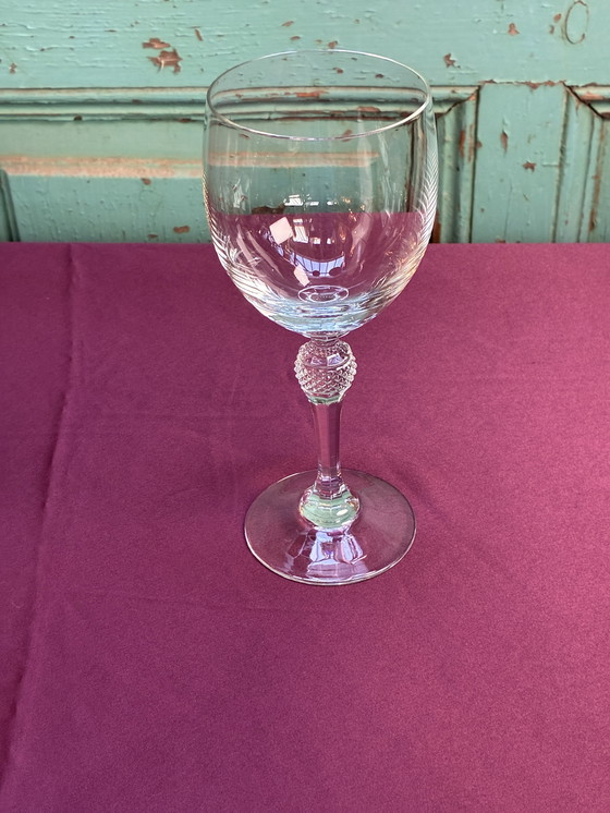 Impresionante juego de copas de vino de cristal de Schott Zwiesel, de la colección Ambiente. Las copas tienen elegantes tallos. El juego se encuentra en excelentes condiciones.