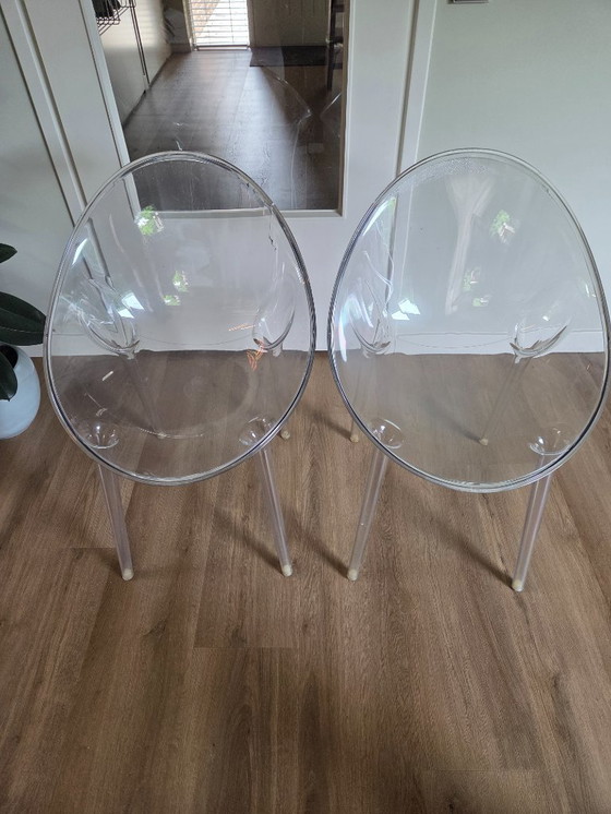 Juego de 6 sillas Mr. Impossible de Kartell, conocidas por su diseño moderno y elegante. Estas sillas transparentes están fabricadas en plástico resistente y ofrecen un aspecto elegante y contemporáneo a cualquier espacio.