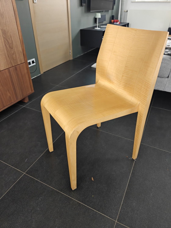 Diseñada por Ricardo Blumer a finales de los años 90... silla ligera con acabado en chapa de roble... en venta como conjunto de 6 sillas (precio por silla 110 €, precio del conjunto 660 €)