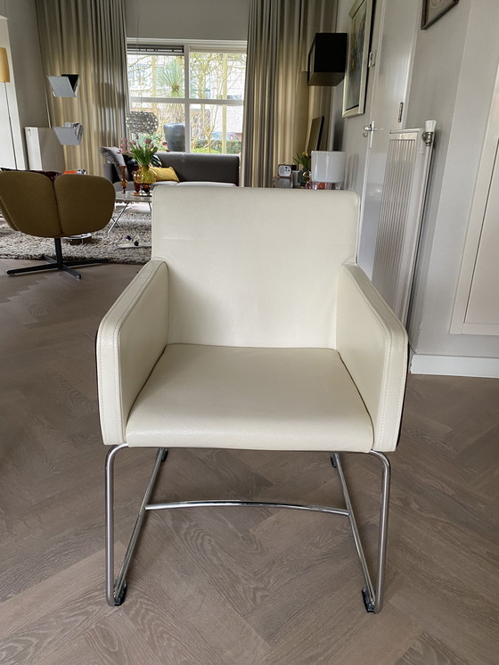 Se venden 8 sillas de comedor Leolux. Seis son idénticas con reposabrazos y dos sin reposabrazos. El modelo Spring es Butterfly. La estructura es de cuero Egret (crudo). Los laterales son de cuero Chocolat. Las sillas están en buen estado. Dos de ellas presentan una pequeña marca de tela vaquera en el respaldo debido al uso frecuente; ver fotos. Compradas en 2013, su precio original superó los 6000 €. Se incluye la factura.