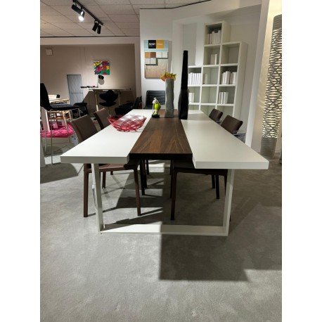 Mesa de comedor Hülsta Now ET17Tablero en laca blanca y roble oscuro, base con recubrimiento de polvo blancoDimensiones: 240x100x75,3cm.