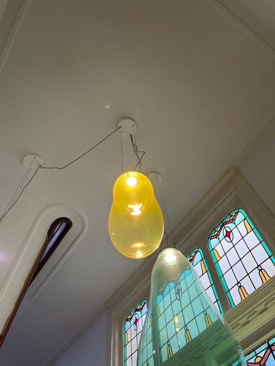 Preciosa lámpara de Alex de Witte en excelente estado. Eche un vistazo también a nuestras otras lámparas de burbujas de Alex de Witte que ofrecemos en Whoppah. Se ofrece un descuento por la compra de 2 o más lámparas. No se dispone de la talla exacta (ya que la lámpara está demasiado alta para alcanzarla), pero la talla indicada es de 40-60 cm (talla pequeña). Precio original nuevo: 1480 €; pujas a partir de 740 €. Las lámparas se desmontarán el 8 de septiembre. Listas para recoger a partir del 9 de septiembre. Si desea ver las lámparas colgadas, puede visitarnos la próxima semana. Ubicadas cerca del Rozengracht, Ámsterdam. Información adicional: Estas lámparas son únicas, ya que se elaboran con soplado artesanal en la República Checa, siempre bajo la atenta supervisión de Alex. Alex impulsa a los sopladores de vidrio a perfeccionar sus habilidades cada vez más, hasta el momento en que las burbujas casi se desmoronan. LED regulable de 9 vatios | 1022 lúmenes | 2700 Kelvin (blanco cálido).