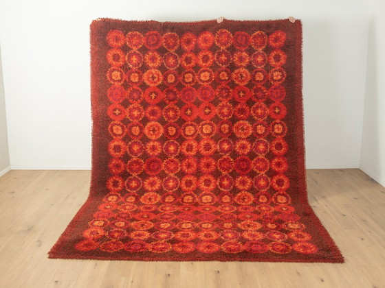 Presentando una cautivadora pieza de la era espacial, esta alfombra Vorwerk es un testimonio de la innovación en diseño y la artesanía. Con unas impresionantes dimensiones de 245 x 340 cm, ofrece una atrevida declaración con sus vibrantes tonos rojos, naranjas y marrones, creando un impacto visual dinámico en cualquier habitación.