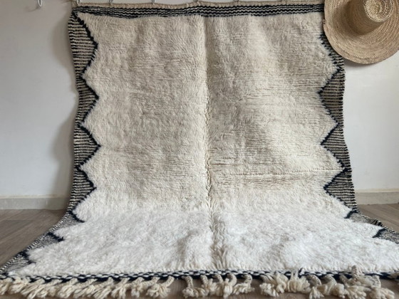 Descubra la elegancia atemporal de esta alfombra marroquí de lana natural, de 250 x 150 cm. Con sus motivos geométricos negros sobre fondo blanco, esta alfombra encarna el estilo boho chic, añadiendo un toque de calidez y confort a su hogar.
