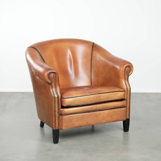 Este hermoso, amplio y espacioso sillón club de piel de oveja tiene un tamaño único y se encuentra en buen estado. Presenta hermosos colores cálidos, una apariencia distintiva y un acabado con ribetes negros y tachuelas decorativas. El sillón se adapta a prácticamente cualquier estilo de interior en la habitación que elija. Debido a un uso responsable, presenta algunos signos de desgaste normales. Este sillón fue hecho a medida y, por lo tanto, tiene un tamaño único. Estructuralmente, está en buen estado y, por supuesto, listo para usar de inmediato; con el uso y mantenimiento adecuados, ¡podrá disfrutar de este hermoso y cómodo sillón durante muchos años!