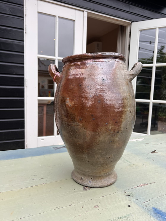 Se trata de un gran tarro de almacenaje de color marrón grisáceo antiguo, perfecto para añadir un toque rústico a la decoración de tu hogar. Fabricado en cerámica, presenta un diseño clásico con dos asas para facilitar su transporte. Sus tonos terrosos y su atractivo vintage lo convierten en un complemento encantador para cualquier espacio.
