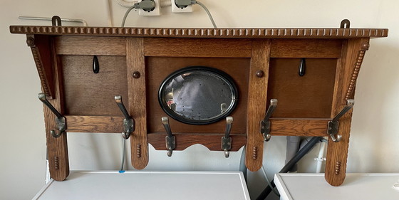 Retroceda en el tiempo con este encantador perchero antiguo con espejo incorporado. Perfecto para añadir un toque de elegancia vintage a su recibidor o recibidor, esta pieza combina funcionalidad con estilo clásico. Fabricado en madera marrón intenso, cuenta con intrincados detalles y robustos ganchos metálicos para colgar todo lo que necesite. El espejo ovalado le da un toque único, convirtiéndolo no solo en un perchero, sino en una pieza destacada.