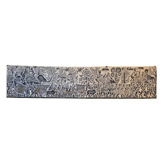 Antigua impresión a tinta del templo de Angkor Wat, que data de mediados del siglo XX. Hermosa impresión antigua a tinta de una de las decoraciones del templo de Angkor Wat en Camboya. Este tipo de impresiones se prohibió en la década de 1990, cuando el templo se convirtió en Patrimonio de la Humanidad por la UNESCO. Se trata de una pieza excepcional y alargada que representa una procesión con diversas figuras y animales. Presenta algunos daños en los bordes y una antigua reparación en la parte posterior.