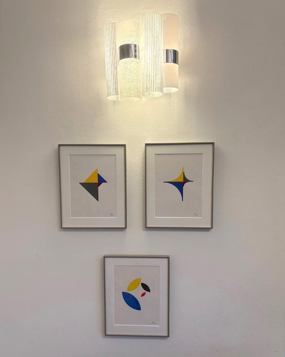 Este conjunto de tres serigrafías geométricas abstractas originales fue creado en 1993 por Anton Stankowski, una de las figuras más influyentes del Arte Concreto del siglo XX y un diseñador gráfico pionero. Stankowski es reconocido internacionalmente por diseñar el icónico logotipo del Deutsche Bank y por su papel en la configuración de la identidad visual moderna mediante la síntesis de arte, matemáticas y diseño.