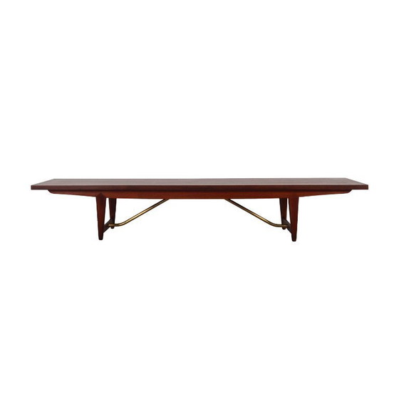 La estructura está revestida con chapa de teca. Las patas son de madera maciza y metal. La superficie ha sido restaurada.