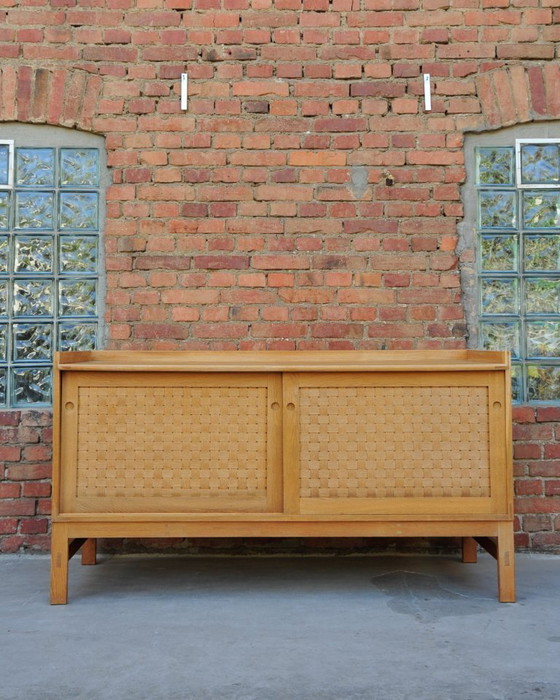 Aparador de los años 60, diseñado por Ilse & Ove Rix para Uldum Møbelfabrik. Fabricado en madera de roble maciza, con 14 cajones colocables individualmente.