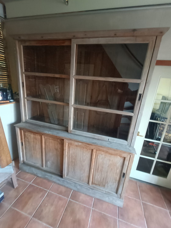 Dimensiones: 184 cm de ancho x 220 cm de alto x 53 cm de profundidad. Este armario de teca tiene un hermoso aspecto desgastado y necesita lijarse y aceitarse.