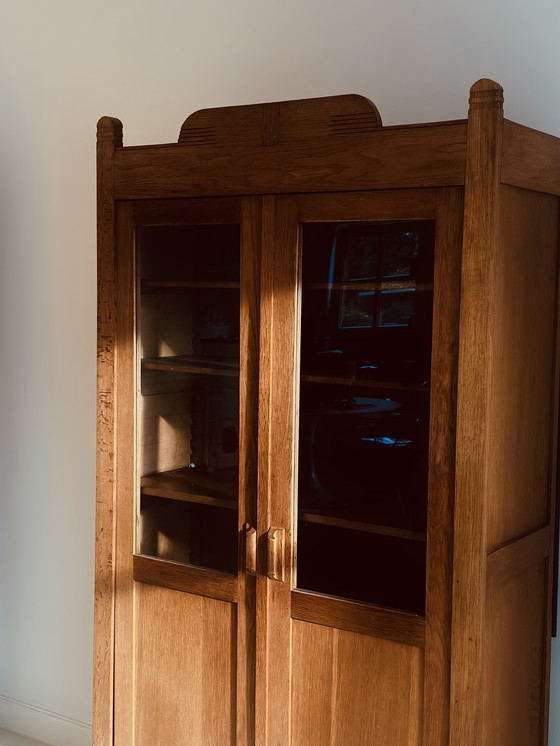 El estilo de la Escuela de Ámsterdam sigue sorprendiendo y es atemporal. Este armario Art Déco está hecho de un hermoso roble claro y está ricamente decorado con formas geométricas y elegantes. Cuenta con dos estantes de cristal, lo que lo hace ideal tanto como librería como vitrina. Además de ser muy práctico, también es una forma encantadora de exhibir sus hallazgos más preciados. ¡Este mueble simplemente lo necesita!