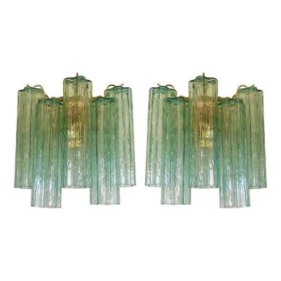 Pareja de apliques de pared "TRONCHI" de cristal de Murano verde agua
