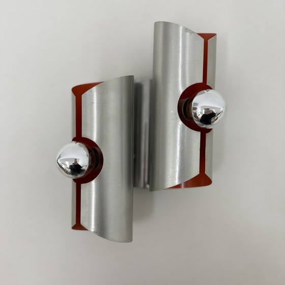 Aplique de pared de aluminio de la era espacial con interior naranja, década de 1970