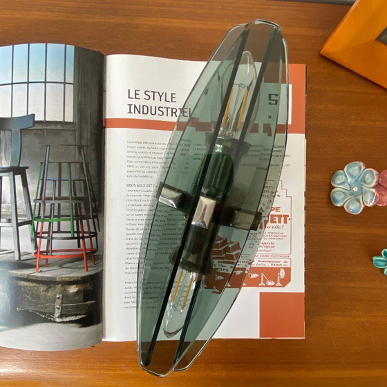 Aplique de pared Veca en cristal gris ahumado y metal cromado