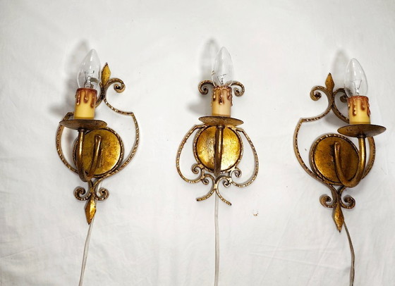 Apliques de hierro forjado y pan de oro. España, años 60.