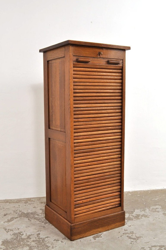 Armario antiguo de roble con puertas enrollables, década de 1900