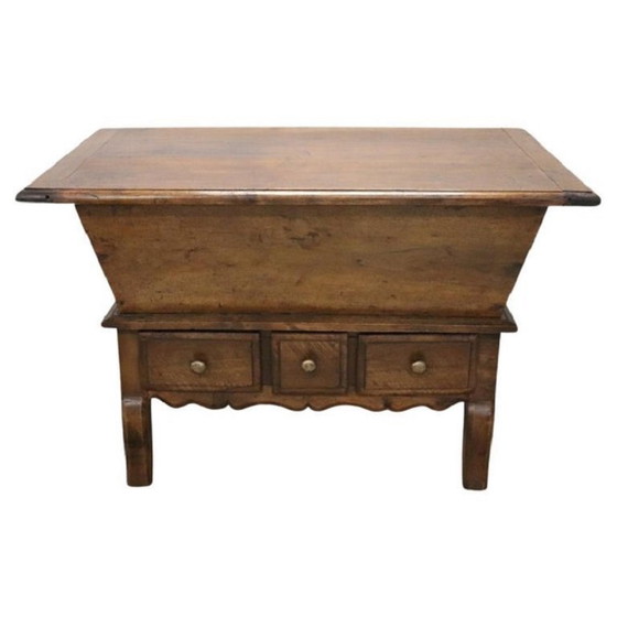 Este exquisito aparador antiguo italiano, fabricado en madera maciza de álamo en el siglo XIX, es un testimonio de sencillez y practicidad. Su diseño limpio y lineal, sin excesivos adornos, lo convierte en un complemento versátil para cualquier estilo de decoración. El aparador cuenta con una robusta tapa de madera que se abre para revelar un gran compartimento de almacenamiento interno, perfecto para una gran variedad de usos. Debajo, tres pequeños cajones proporcionan un práctico almacenamiento para objetos más pequeños, mejorando su funcionalidad.