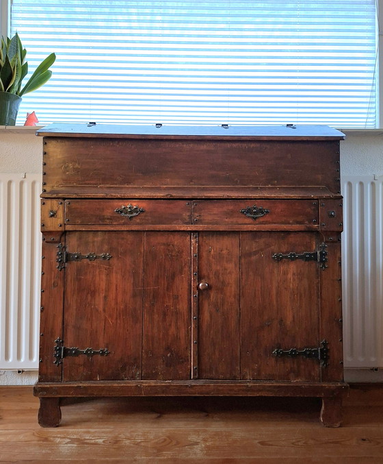 He estado buscando un nuevo hogar para mi armario. Es un cajón de cebada con una solapa en la parte superior. Originario de Holanda Septentrional, se usaba para guardar judías, guisantes, etc., en la parte superior, de ahí su nombre.