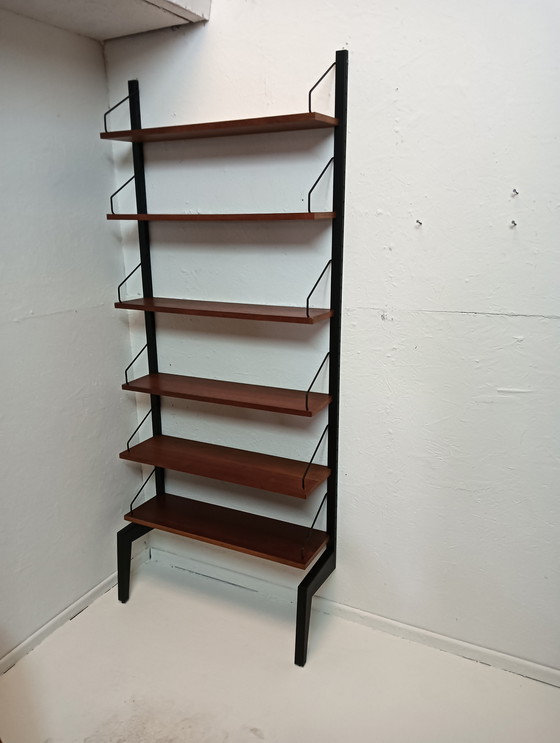 Este armario modular de Poul Cadovius es un bello ejemplo del diseño Mid Century Modern. Fabricado en madera y metal de alta calidad, el armario ofrece una solución de almacenamiento flexible con múltiples estantes. Su elegante diseño y sus cálidos tonos de madera lo convierten en un elegante complemento para cualquier interior.