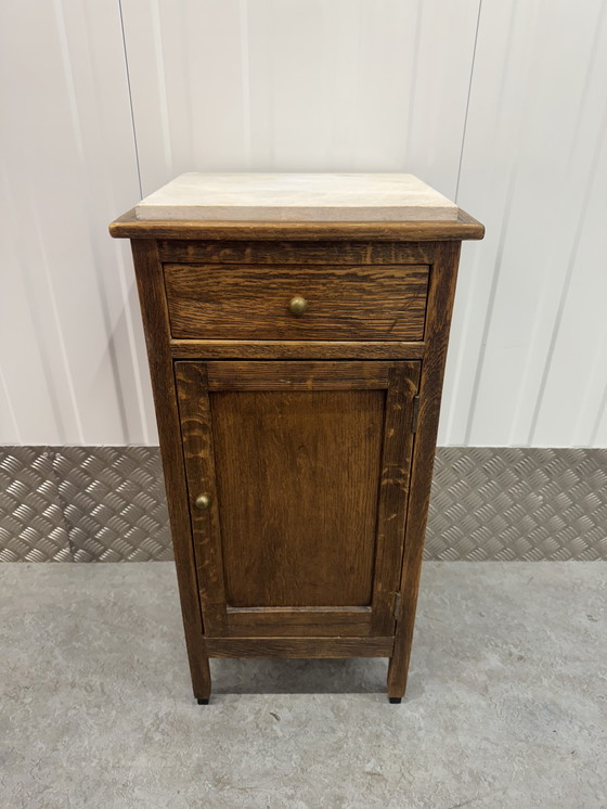 Art Deco Amsterdamse school nachtkast met marmer blad