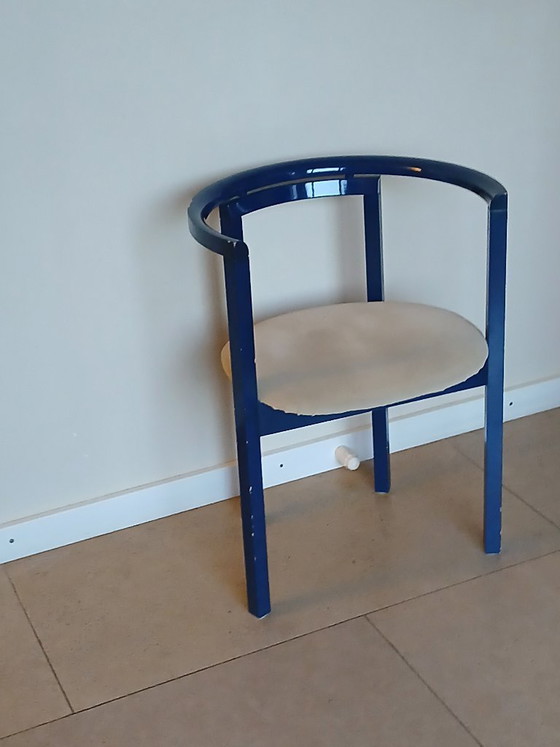Silla de comedor Artifort 070, una pieza rara. Diseñada por Geoffrey D. Harcourt (ver su sitio web). Madera de haya, acabado brillante RAL 5013. Fabricada en pequeñas cantidades por WPM en Kerkrade entre 1986 y 1987. Tras 40 años, probablemente sean los últimos ejemplares. Aunque parece frágil, nuestra familia, compuesta por tres niños y un perro grande, la ha usado desde 1987. Estructuralmente está bien, sin golpes, pero la laca está dañada; el asiento necesita una reparación. Su precio de venta en su momento era de aproximadamente 600 florines húngaros cada una.