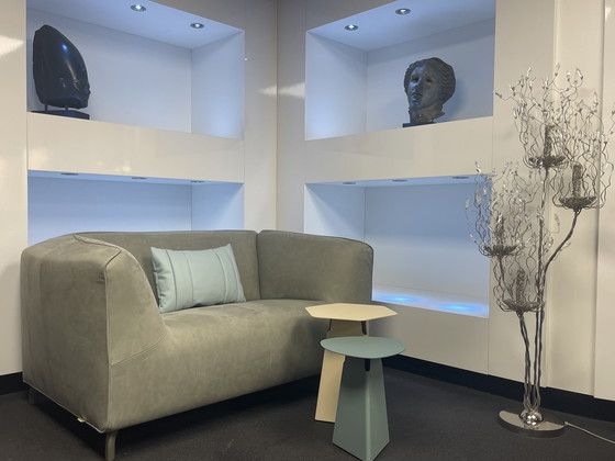 El sofá de dos plazas Marv de Leolux tiene las siguientes dimensiones: Ancho: 150 cm. Fondo: 95 cm. Alto: 75 cm. Alto del asiento: 42 cm. Tapizado: Piel gris Nerón. Precio nuevo: 3875 €, ahora 2450 €.