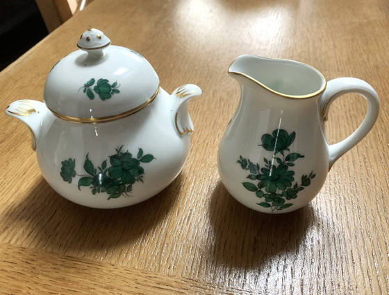 Azucarero y lechera de la fábrica Augarten Wien (Viena), uno de los fabricantes más prestigiosos de Europa, elaborados con porcelana excepcional de alta calidad para coleccionistas. Numerados.