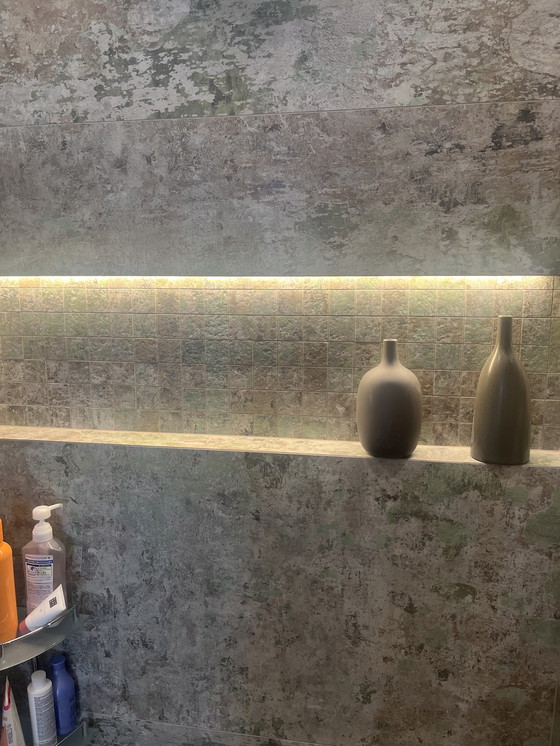 Pedí estos azulejos en la tienda italiana en línea, pero también acabo de comprobar si están disponibles en nl y lo que cuestan. No pude encontrar el mosaico en sí, sólo los grandes azulejos evoke- en nl cuestan 30 euros más ( ver foto).