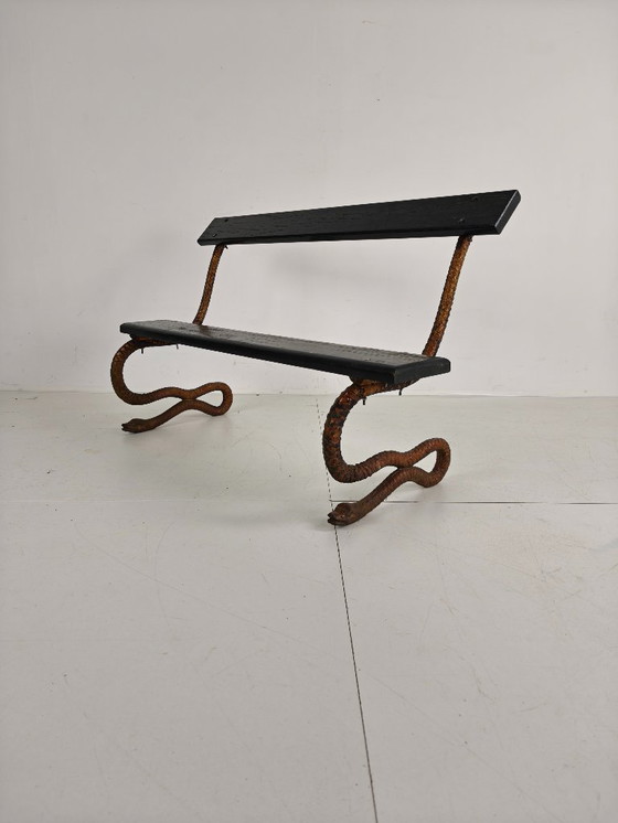 Nota: Al banco le falta una pieza de la cola serpenteante (como se muestra en la foto), lo que le da aún más encanto y autenticidad.