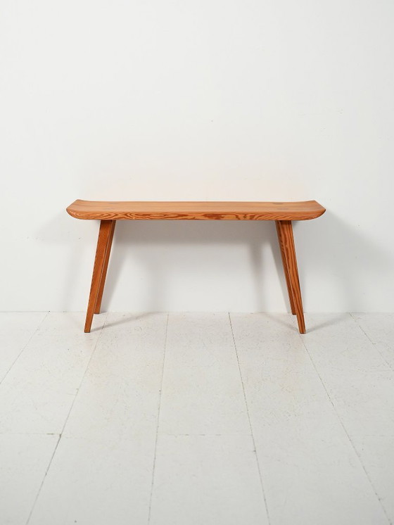 Banco sueco de pino Visingsö, atribuido a Carl Malmsten, una expresión refinada de la elegancia sueca y la tradición artesanal nórdica.