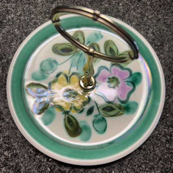 Esta encantadora bandeja con asa de Boch La Louviere, de la serie Menuet, decoración In the Mood, es un hermoso complemento para cualquier mesa. Con su vibrante motivo floral en tonos verdes, amarillos y rosas, desprende un encanto vintage perfecto tanto para el uso diario como para ocasiones especiales. El asa metálica no solo es funcional, sino que también añade un toque de elegancia.