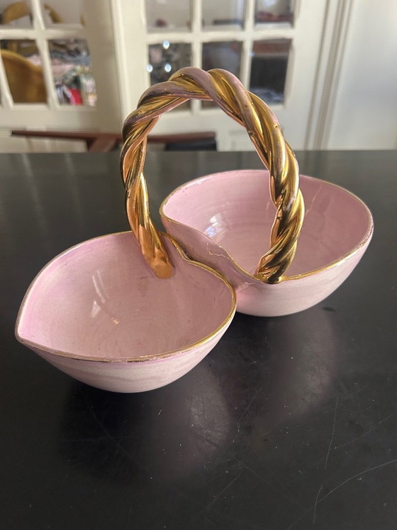 Bandeja para baratijas en forma de corazón de loza de Louviers