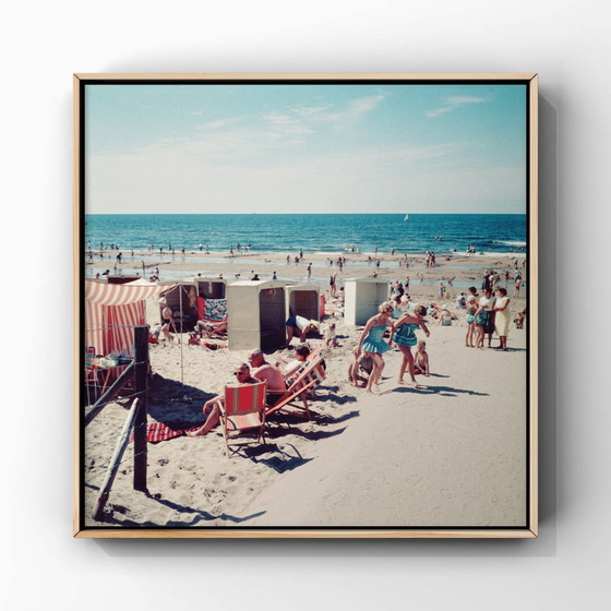 Esta bella impresión artística muestra a unos bañistas en Wijk aan Zee en 1960, captada por el renombrado fotógrafo Willem van de Poll. La foto destila el encanto intemporal y la diversión de un día de verano en la playa a principios de la década de 1960.