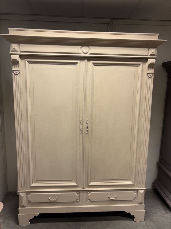 Este elegante armario brocante es un bello complemento para cualquier interior clásico. Fabricado en madera, presenta un encantador acabado en color crema que resalta su diseño clásico. El armario ofrece un amplio espacio de almacenamiento con su espacioso interior y dos cajones inferiores. Sus intrincados detalles y su robusta construcción lo convierten en una pieza tanto funcional como decorativa. Perfecto para añadir un toque de encanto vintage a su hogar.