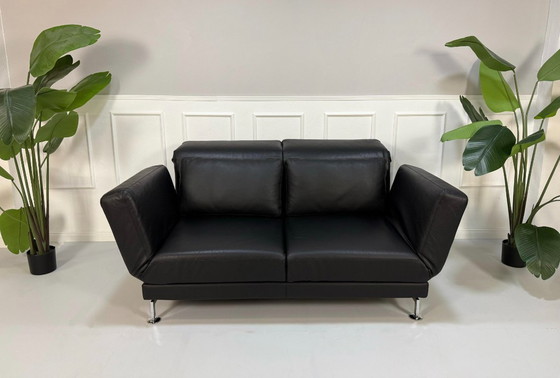Brühl Moule Sofá Piel Negro Función Dormir Pieza de Exhibición