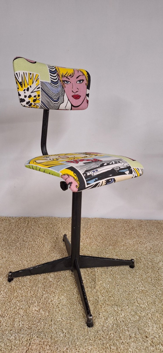 Maak je werkplek een stuk leuker met deze unieke bureaustoel in industrieel design, compleet met een opvallend comics thema. Deze stoel is niet alleen een eyecatcher, maar ook een comfortabele plek om je creatieve ideeën tot leven te brengen.