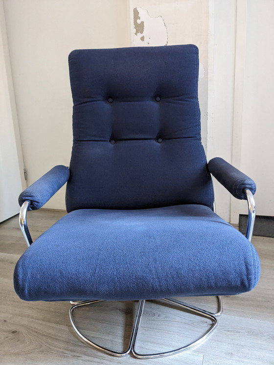 Sillón atribuido a Jan des Bouvrie para Gelderland, Países Bajos, década de 1970. Modelo 400, sillón giratorio de la década de 1970 con base cromada y cuero marrón oscuro, diseñado por el diseñador neerlandés Jan Antoon des Bouvrie. Fue un diseñador de interiores neerlandés (1942-2020). Diseñó la silla para la empresa Gelderland, fundada en 1936, Países Bajos. El número 840 está impreso bajo la base. Las dimensiones son 95 cm de alto, 72 cm de ancho y 80 cm de profundidad. La altura del asiento es de 43 cm y pesa 20 kg. La silla se encuentra en buen estado vintage. Esta pieza se atribuye al diseñador/fabricante mencionado anteriormente.